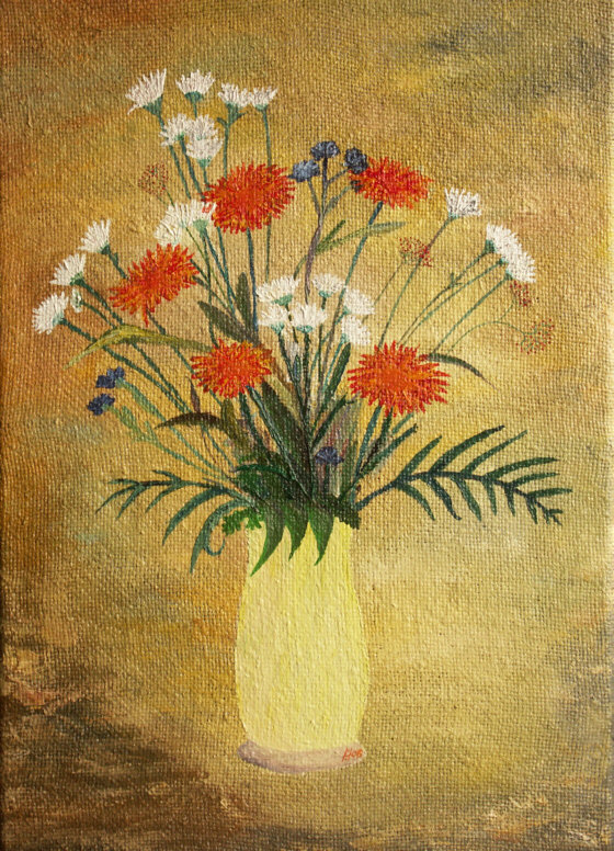 Vase mit Blumenstrauß 70 x 50 cm Öl, Sackleinen