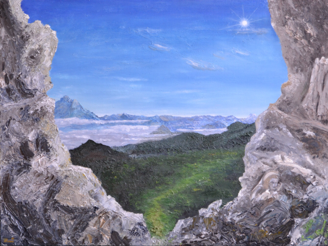 Der besondere Blick 90 x 120 cm Öl, Holz